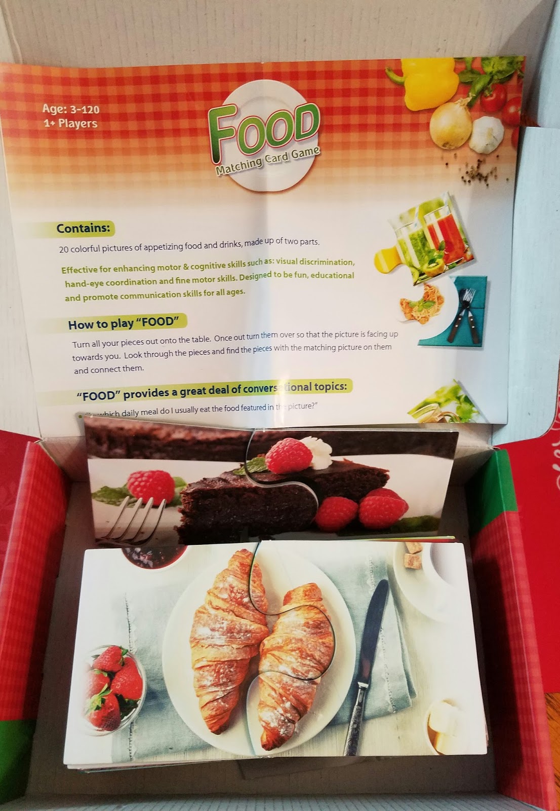 I was sent another educational game for review. This one is called "Food" and is by MK Games. This one is a matching game, but it teaches children about healthy nutrition habits. It has 20 matching card sets. Each picture makes up a certain kind of food. It is for ages 3 and up. I play this with my 8 yr old nephew. When we get a match, I ask him if this is a healthy food. That way he learns the basics about nutrition. The cards are made of a very thick cardboard, and are very durable. All all the reviews I did on games, this one is my favorite. The pictures are high definition, and the food looks good enough to eat! I wish I had some of the recipes for the card matches. I recommend this educational game. It's quite fun, and all the family members can play. You can check it out at Amazon though the following link.